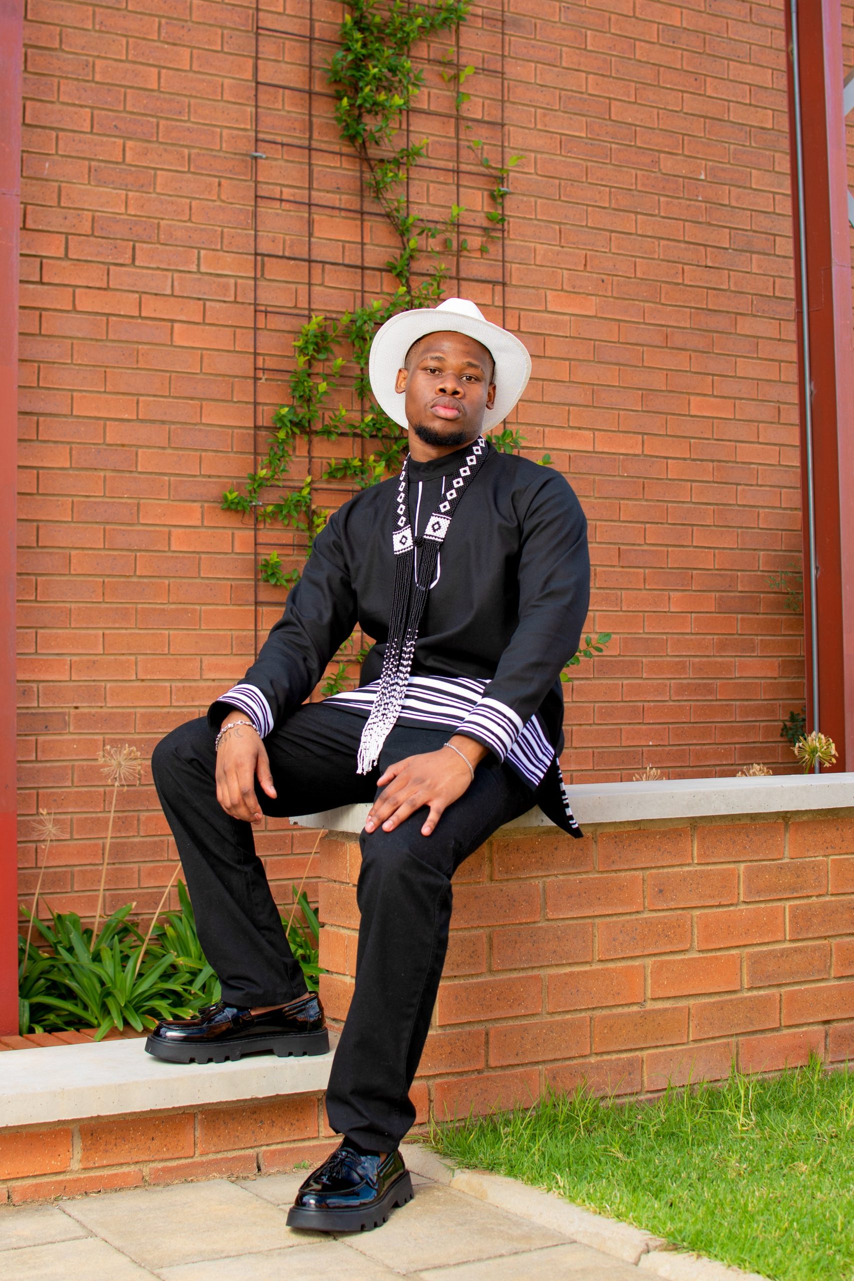 What the item is: Men’s long sleeve shirt in a classic black and white color combination.