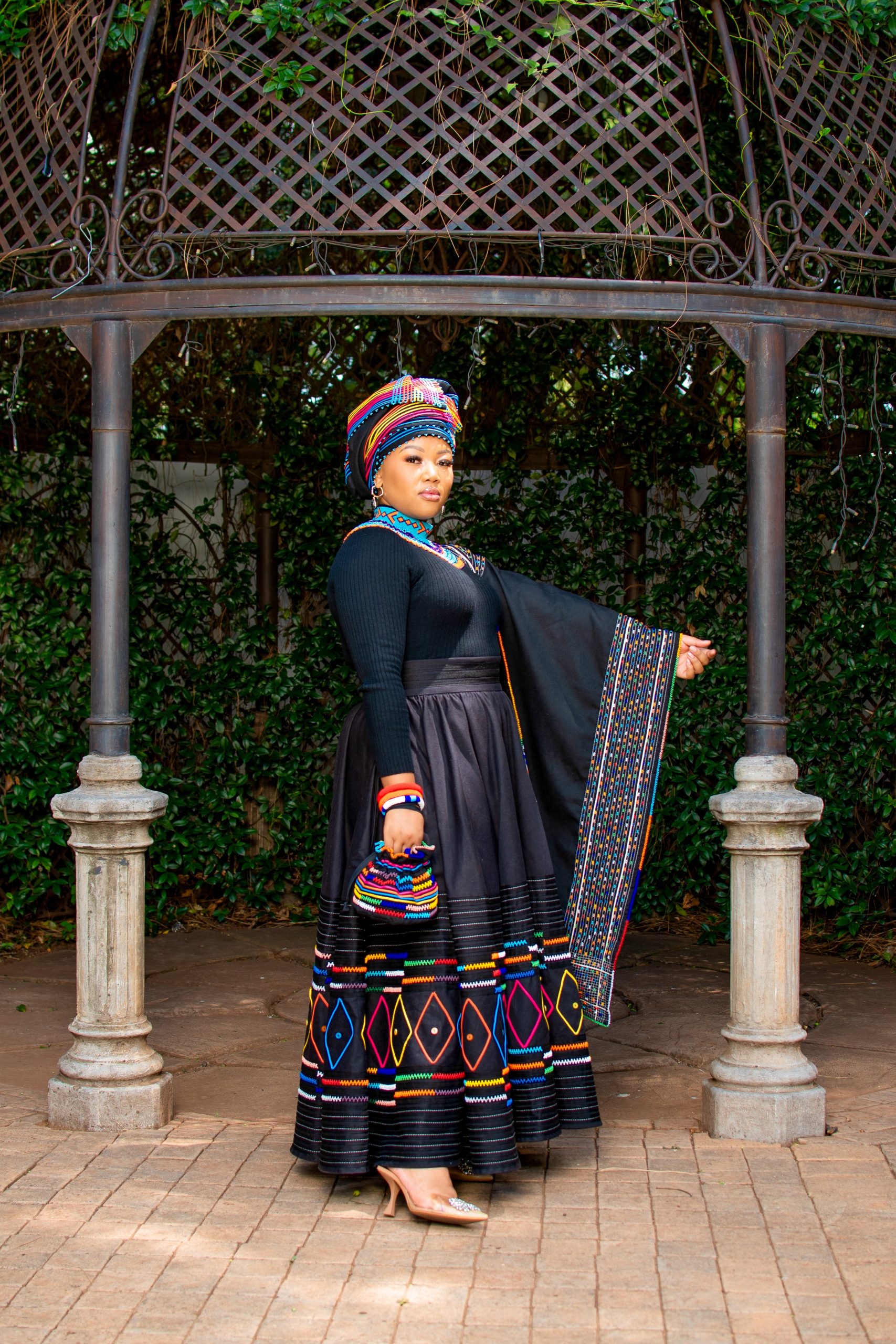 Add-ons: Multicolor headwrap and fully beaded shawl/headwrap and a matching bag available as optional additions.