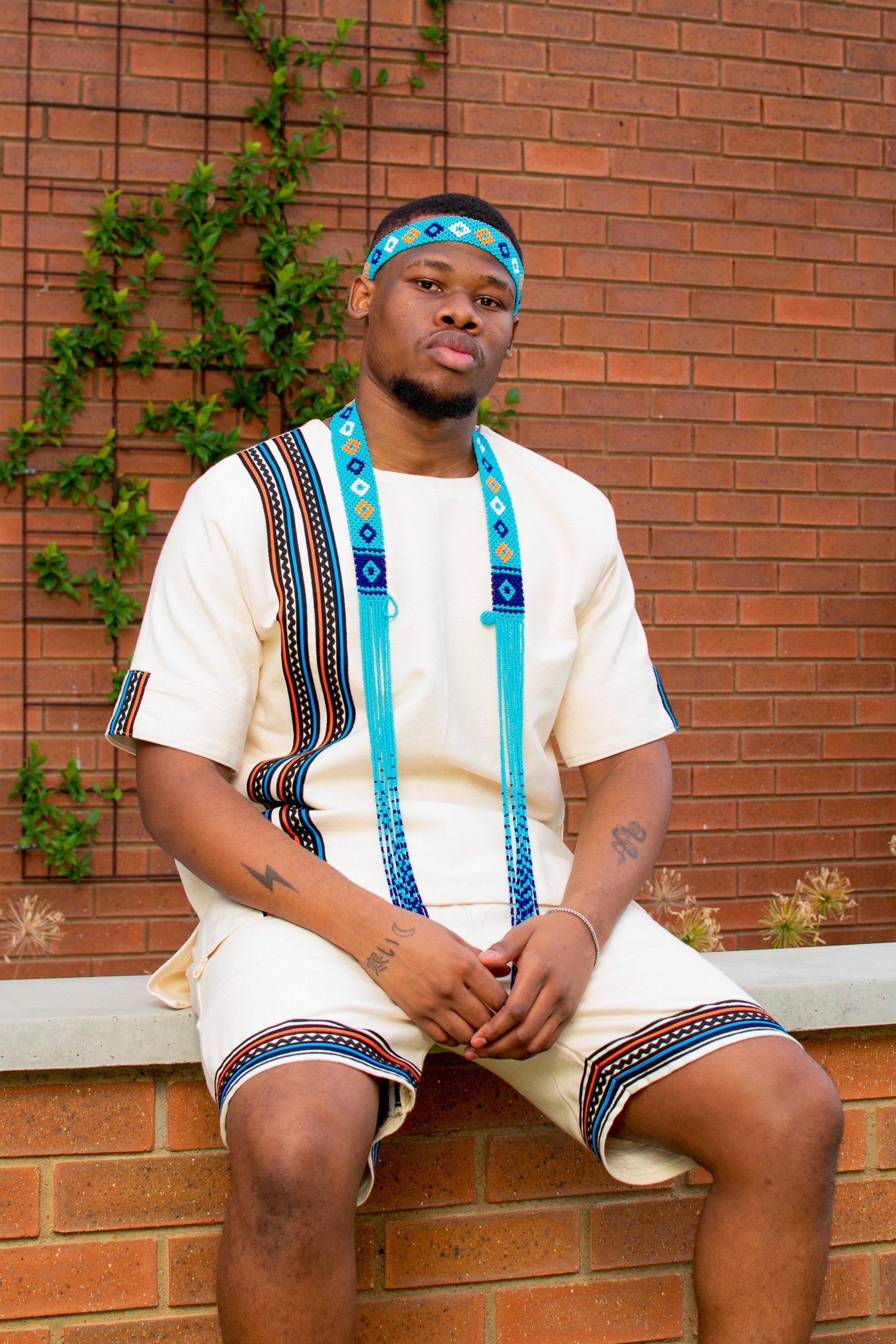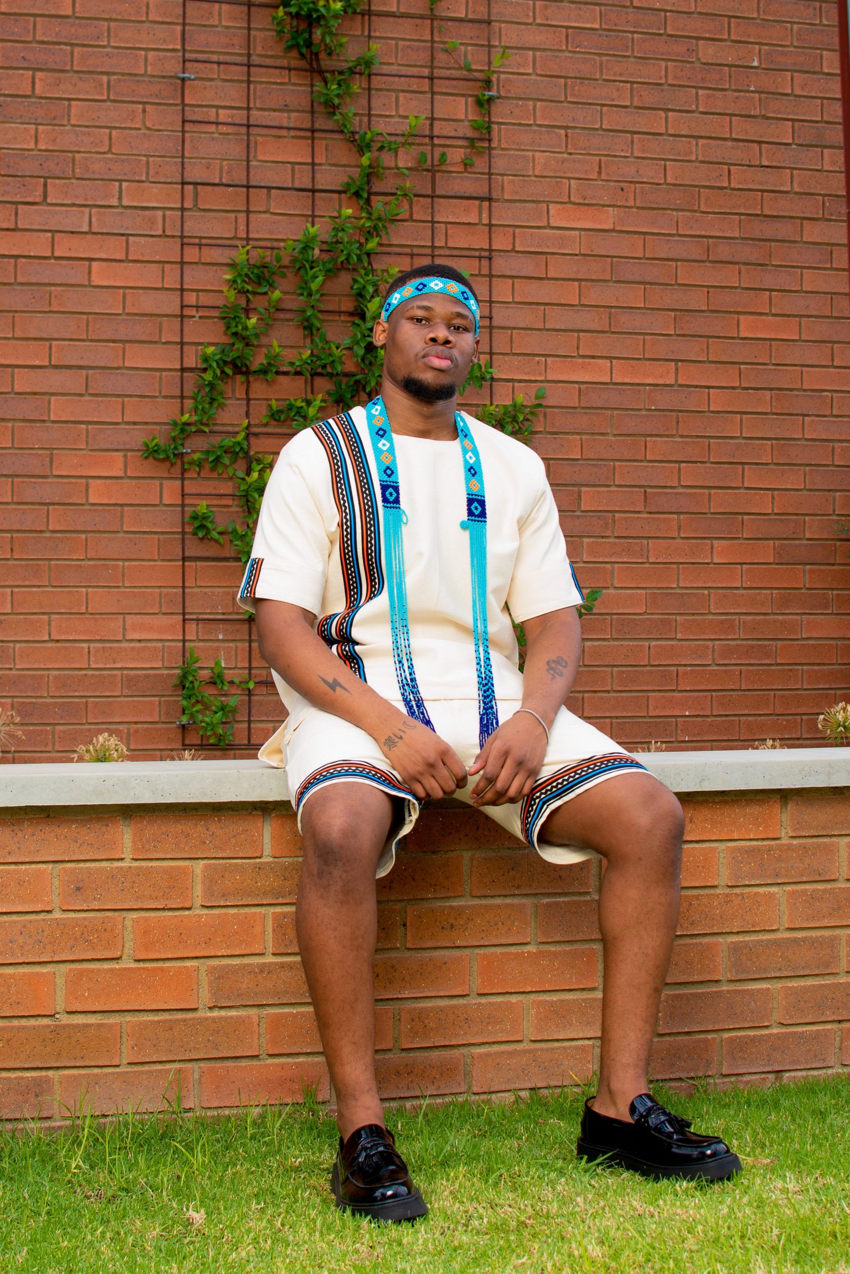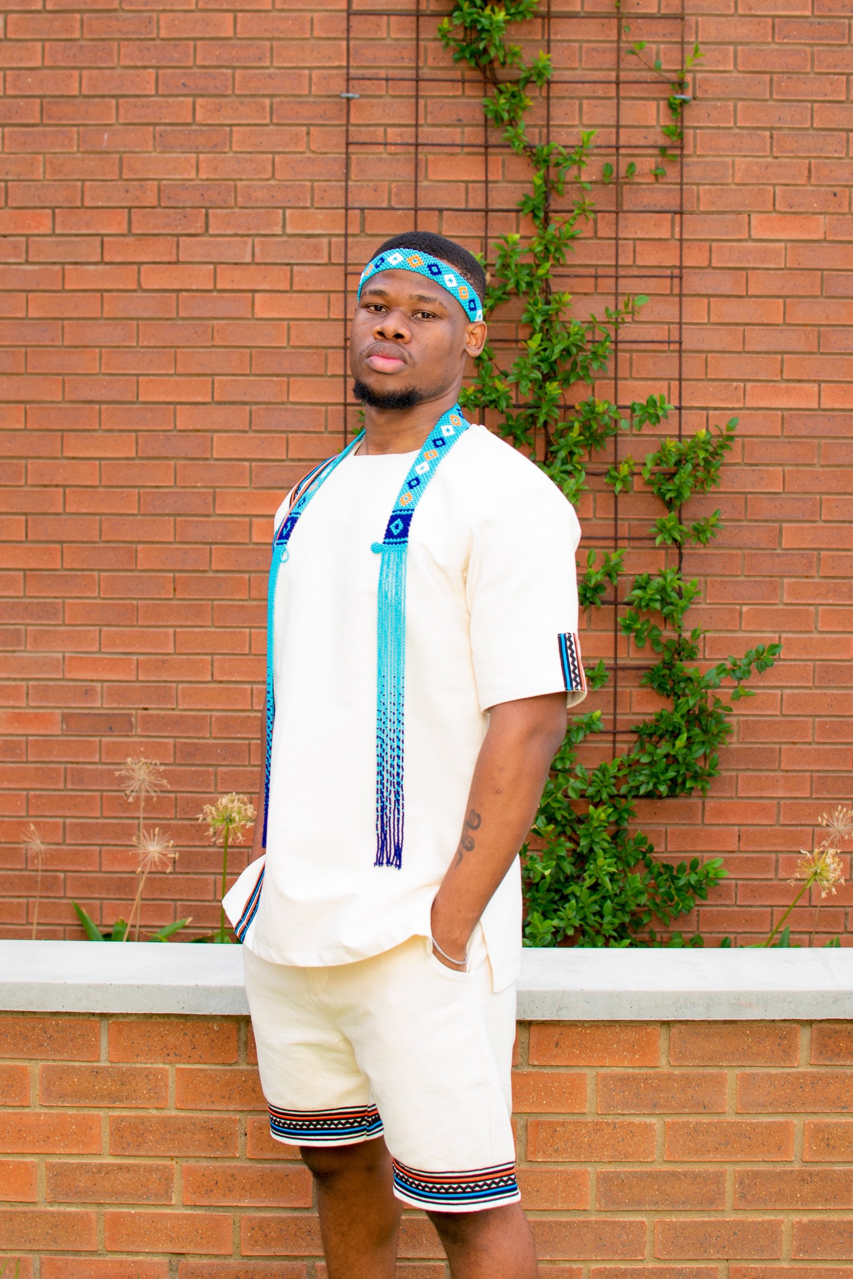 Cream and Turquoise men’s 2 piece ensemble - Image 5
