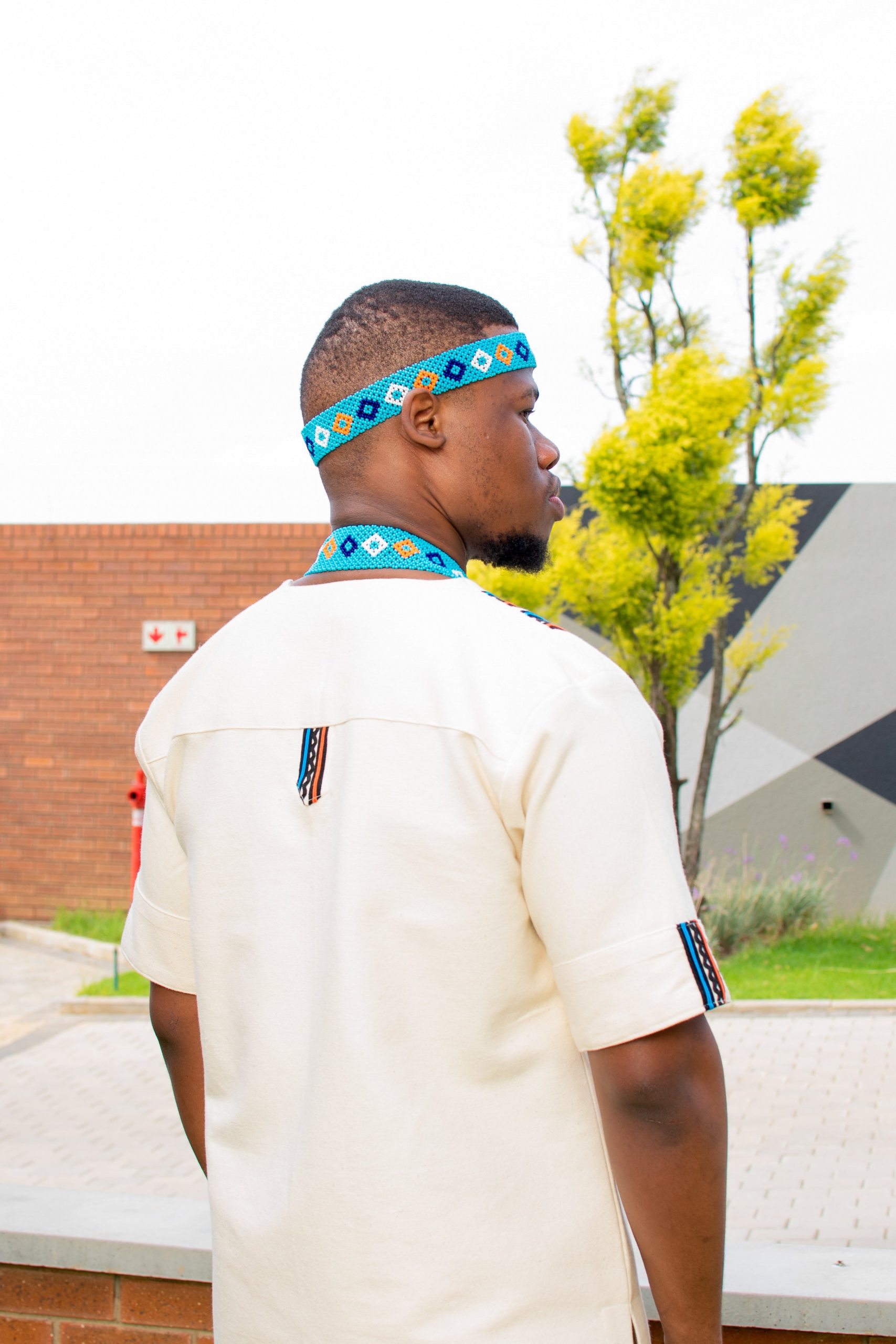Cream and Turquoise men’s 2 piece ensemble - Image 4