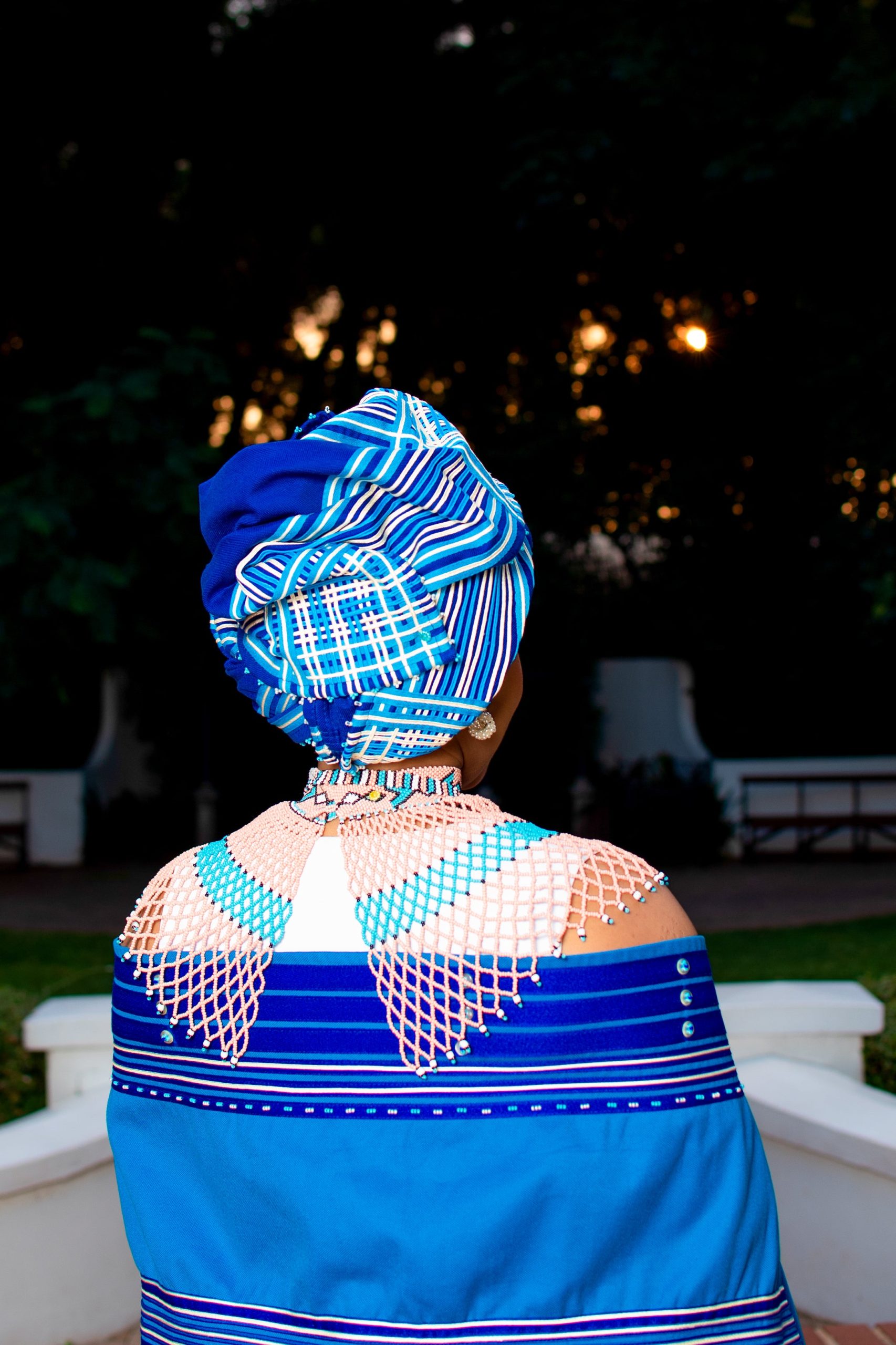 What the item is: Ladies’ 5 Piece Ensemble – includes a full flare skirt, Incebetha (Front Apron), and Iqhiya (Headwrap).
